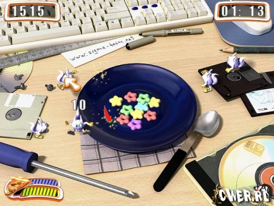 В этой аркадной игре вы сможете в одном из 3 игровых режимов внести посильный вклад в борьбу с коварными проглотами. В первом, который называется "Реакция" необходимо мышкой отгонять Чудиков от тарелки с хрустящими звездочками. В режиме "Память" нужно отыскивать пары одинаковых предметов, которые прячут чудики. Наконец, в третьем режиме вам предстоит набирать на клавиатуре слова, задуманные монстриками.