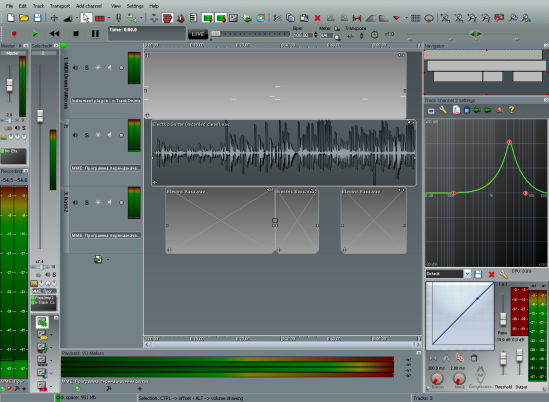 n-Track Studio поможет вам превратить ваш компьютер в домашнюю звукозаписывающую студию. Программа представляет полнофункциональную многотрековую аудиостудию, позволяющую в домашних условиях создавать свои собственные профессиональные музыкальные композиции. Вы сможете записывать и воспроизводить огромное число аудио и MIDI треков одновременно, накладывать всевозможные эффекты на каждый трек, работать с каналами и т.д. Кроме стандартных эффектов (Reverb, Compression, EQ, Echo, Auto volume, Pitch Shift и Chorus), программа позволяет подключать DirectX и VST 2.0 плагины от сторонних разработчиков. N-Track Studios может работать с любыми стандартными или многоканальными 16 и 24-битными звуковыми картами.