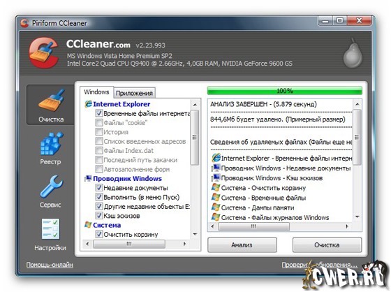 CCleaner, в зависимости от настроек, чистит следующие компоненты Windows:
