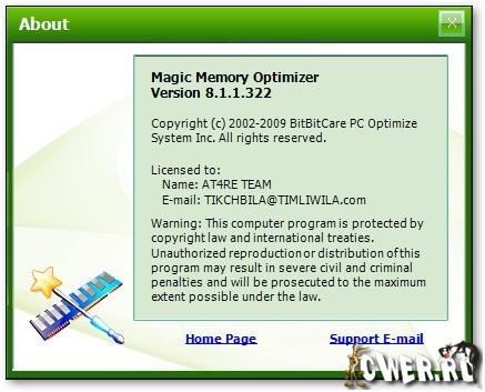 Magic Memory Optimizer - предназначена для решения трудных и критических проблем возникающих в оперативной памяти компьютера. Память - самый драгоценный ресурс на вашем компьютере; если ее становится недостаточно, ваш компьютер начинает медленно работать, "зависать" или наступает крах, - падение системы. Сама же Windows не управляет памятью на должном уровне. Со временем, не имеет значения какой объем памяти у вас имеется, Windows постепенно для своей работы и прикладных программ отбирает остатки свободной памяти, что легко может привести вашу систему к краху. Magic Memory Optimizer решит все эти проблемы, высвобождая и восстанавливая беспечно растраченную системой память для ваших программ.