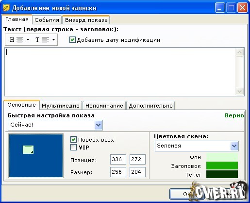 - Детально настраивать дату и время напоминания с помощью "Визард показа".