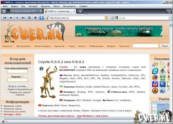 Скачать программу Opera 10.00 Build 1750 Final (8,67 МБ):
