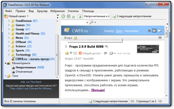 FeedDemon 3.0.0.30 PreFinal + Rus