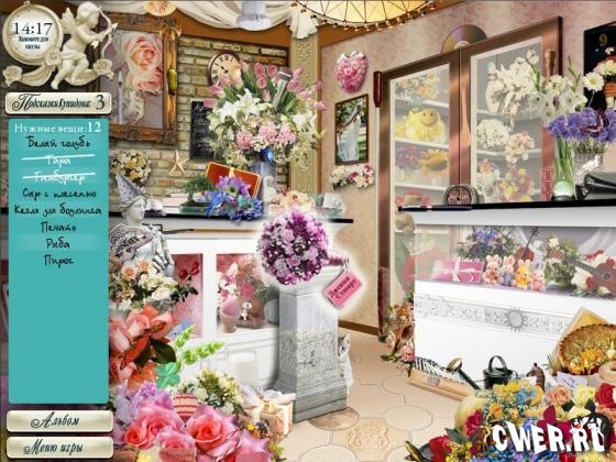 Но в одиночку справиться с этой задачей непросто, так что без вашей помощи ей не обойтись. Отыщите нужные предметы среди массы ненужных товаров, выберите свадебный торт и найдите подарок, который наверняка понравится молодоженам! Самые любознательные игроки смогут узнать, как состоялось знакомство виновников торжества, а также подробности их медового месяца.