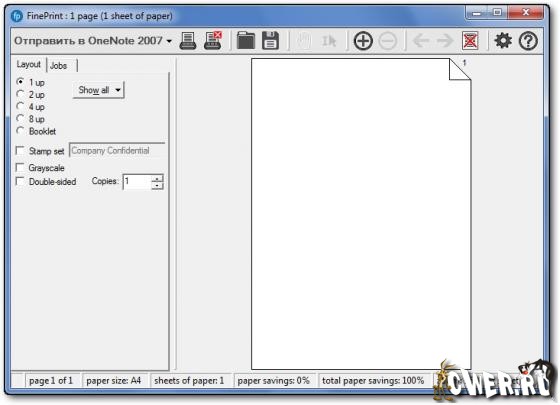 FinePrint - многофункциональный драйвер для принтеров, значительно расширяющий возможности любых принтеров при печати документов: предпросмотр, печать нескольких страниц на одном листе, распечатка брошюр, автовставка заголовка и "подвала", создание фирменных бланков, подложек, рамочек и многое другое. FinePrint работает со всеми моделями принтеров, являясь, по сути, многофункциональным универсальным драйвером принтера с удобной графической оболочкой для управления им. Еще одна полезная возможность - допустимость использования нескольких преднастроенных виртуальных принтеров. К примеру, один будет автоматически распечатывать брошюры, а другой - печатать текст на фирменном бланке. При использовании FinePrint значительно уменьшаются затраты на печать, в то же время общая работа принтера усиливается.