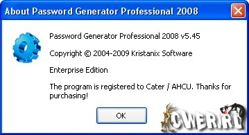 Password Generator Professional 2008 - программа, которая способна быстро генерировать до 10 миллионов уникальных паролей, ников и логинов за один сеанс. Экспорт списка паролей осуществляется в форматах txt, csv, html или mdb. Программа очень полезна пользователям, которые часто вынуждены менять аккаунты и различные пароли, которым есть чего терять заботясь о безопасности и своей репутации.