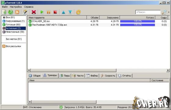 µTorrent - компактный BitTorrent-клиент с поддержкой одновременной загрузки сразу нескольких файлов, настраиваемой полосой пропускания, быстрым восстановлением прерванной загрузки и небольшим использованием памяти.