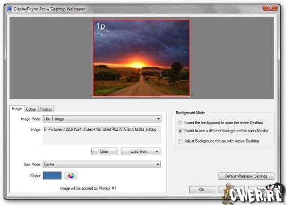 DisplayFusion - небольшая программа для управления обоями рабочего стола, нахождения и установки новых обоев, а также для их смены через указанный промежуток времени. Если у вас многомониторная система, то данная программа поможет вам устанавливать на каждый монитор разные обои по-отдельности - это и является главной особенностью данной программы, ведь стандартными средствами Windows это сделать пока что невозможно.
