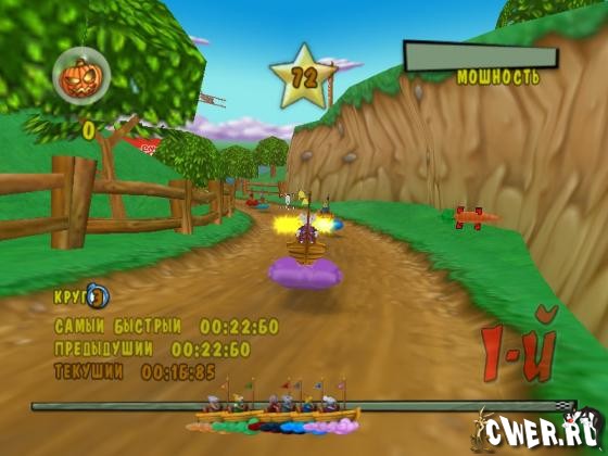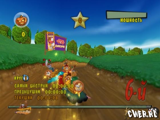 Бери своих друзей и держись крепко, так как твои волосы встанут дыбом в гонке на больших скоростях! Отличный подбор героев, мощность скоростей, компьютерные системы A.I., соревнования и гонки в одиночном режиме и мультиплеере. Подорви своих соперников снарядом метательных морковок или поставь ловушки из тыквенных мин, или обхитри своего оппонента неуязвимым щитом и увеличенной силой.