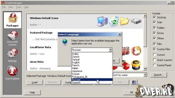 В результате русификации в папке C:\Program Files\Stardock\Object Desktop\IconPackager\lang появится файл Russian.lng. Запустите программу и в меню File выберете пункт Language, в появившемся окне выберете Russian, согласитесь с изменением языка и обязательно перезагрузите программу.