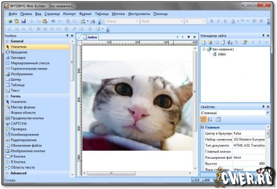 WYSIWYG Web Builder - программа для создания веб-страниц, которая автоматически создает HTML-код, в то время, как вы просто размещаете объекты, т.е. знание HTML от вас совершенно не требуется. Просто перетащите необходимые объекты в любое место страницы. После этого останется только закачать получившиеся файлы на сервер, с помощью встроенного инструмента "Публикация". Имеет, практически, все возможности MS Frontpage, но содержит значительно больше инструментов для работы с объектами (изображения, текст, таблицы и т.д.). Благодаря WYSIWYG Web Builder веб-страница в Интернете будет иметь точно такой же вид, как на экране ПК, независимо от используемого браузера.