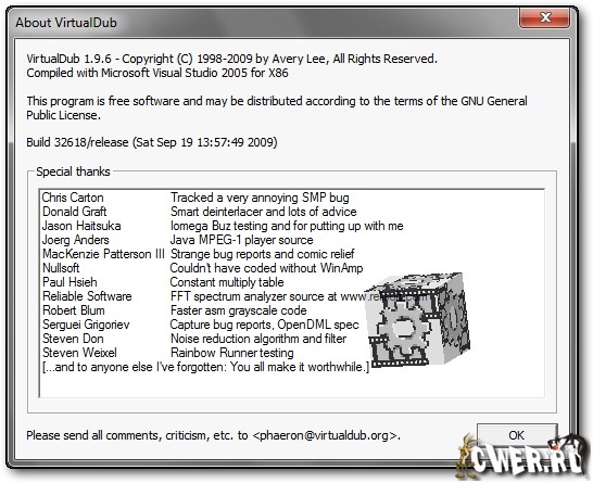 Скачать программу VirtualDub 1.9.6 Build 32618 Stable x32 (1,62 МБ):