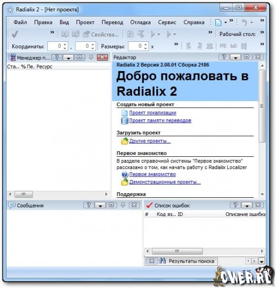 Radialix - профессиональный инструмент для локализации (перевод интерфейса на иной язык) приложений, в том числе созданных с использованием VCL. Продукт поддерживает технологию памяти переводов и позволяет выполнять автоперевод с поиском неточного (Fuzzy) соответствия. Визуальные редакторы диалогов, форм и меню, автоопределение типа компилятора, типа ресурсов и предков классов VCL, симулятор перевода и отладчик упрощают процесс локализации. Поддерживается локализация строк в коде приложения.