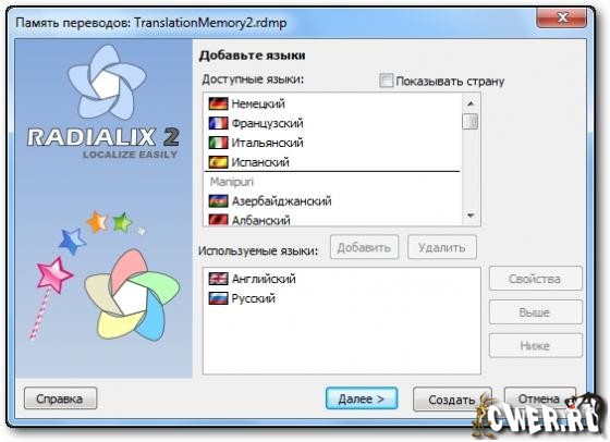 Для работы с текстом в Radialix 2 используется технология Unicode. Это означает, что поддерживается редактирование и создание локализованных файлов на любых языках, в том числе использующих двухбайтовые наборы символов (китайский, японский и др.).