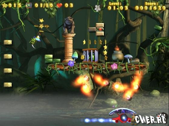 Игра приведет Вас к 16 новым землям, таким как руины, пещеры или храмы. Пройдите все уровни, чтобы спасти 160 забавных небольших существ, и использовать способности Вашего нового космического корабля, захватить сотни монстров! Подготовьтесь к поистине разоряющему арканоиду, в котором Вы будете путешествовать через 160 уникальных уровней.