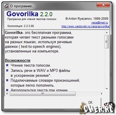 - В установочный пакет включена новая версия Govorilka_CP (также с поддержкой SAPI 5).