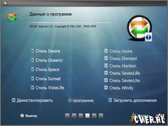 XPLife очень проста и интуитивно понятна, не добавляет новых тяжёлых визуальных элементов, заменяются только стандартные, благодаря чему не влияет на скорость работы системы. Всего один клик и Windows преображается до неузнаваемости. В меню программы есть комментарии, которые помогут всё сделать правильно.