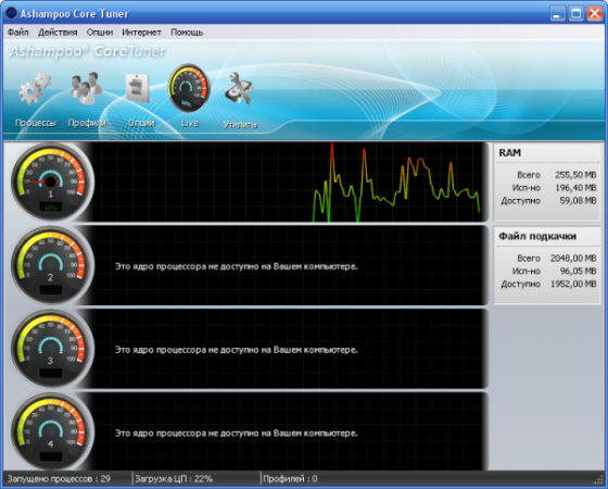 Ashampoo Core Tuner - программа от немецкого разработчика, которая позволяет оптимизировать производительность вашего многоядерного процессора. Многие современные компьютеры работают на двухядерных процесссорах, некоторые даже на четырехядерных. К сожалению, Windows не всегда хорошо управляет несколькими ядрами, из-за чего вы не получаете реальную мощность и производительность от купленного процессора. Данная программа позволяет исправить ситуацию, оптимизировав производительность вашего ЦПУ.