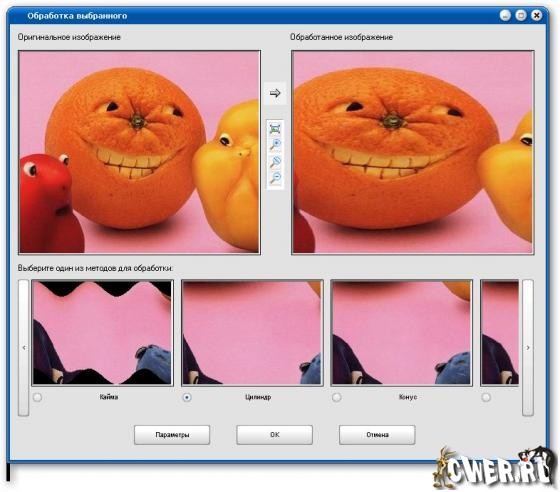 - Преобразование изображения включая кадрирование, вращение, изменение размеров, зеркальное отображение