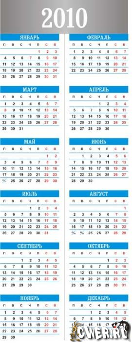 Скачать векторные календарные сетки 2010 г. (10,62 МБ):
