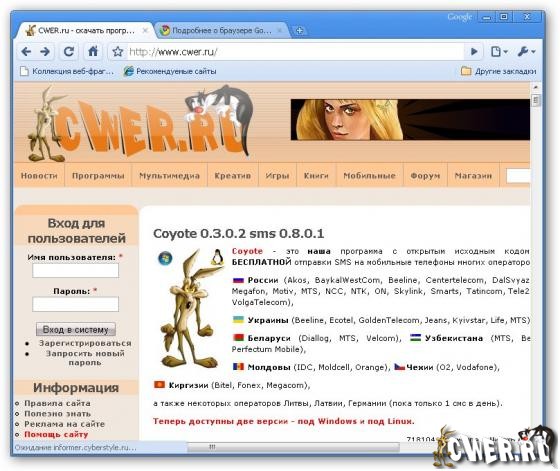 Google Chrome - веб-браузер производства Google с открытым исходным кодом, сочетающий поддержку веб-приложения и удобный поиск с высокой скоростью и стабильностью. В Chrome использованы наработки Apple WebKit и Mozilla Firefox. Из особенностей Chrome разработчики особо выделяют изолированные вкладки, предотвращающие сбой работы программы и обеспечивающие более надёжную защиту от опасных сайтов. Кроме этого, в Chrome реализован новый движок JavaScript V8, который позволит браузеру работать с веб-приложениями нового поколения.