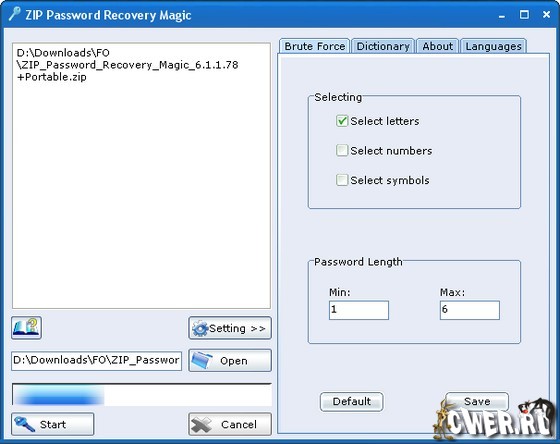 ZIP Password Recovery Magic – простая в использовании программа, которая поможет восстановить забытые пароли к ZIP архивам. Поддерживается перебор по цифрам, буквам и символам. Если паролем является неизвестное слово можно использовать атаку по словарю. Под словарной атакой понимается проверка всех известных слов на наличие в пароле. Данная программа имеет удобный и понятный пользовательский интерфейс.