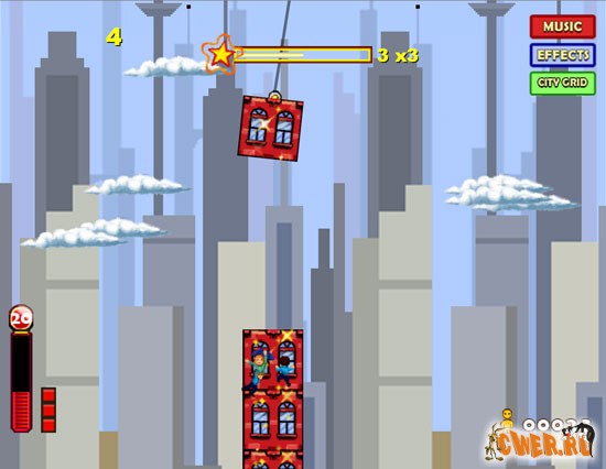 Построй дом! Правила игры просты: нужно ставить краном этажи дома один за другим так чтобы сам дом не обрушился.