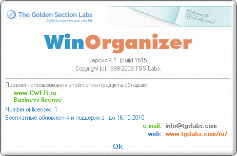 Скачать программу WinOrganizer 4.1 Build 1515 (6,67 МБ):