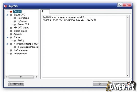AnyDVD - предназначена для снятия защиты с любых DVD-дисков, так что вы сможете просматривать DVD-фильмы на компьютере с DVD-ROM, региональный код которого не соответствует этому DVD-диску. Даже если ваш привод не "обеззонен", у вас есть возможность копировать диски с любым региональным кодом напрямую с DVD-ROM на DVD±RW!