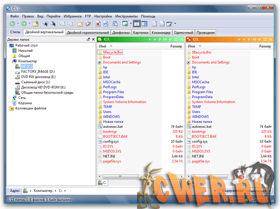 Directory Opus - мощная альтернатива Проводнику с настраиваемым интерфейсом, встроенным ftp-клиентом, внутренней поддержкой архивов, просмотром изображений, встроенным командным языком, настраиваемыми горячими клавишами для управления и очень большим числом других полезных при работе с файлами опций. Например, поиск дубликатов, безвозвратное удаление файлов, поддержка SSL и SSH/SFTP, конвертирование графики и т.д.