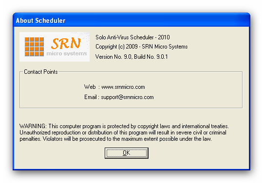 Solo Antivirus 2010 9.0.1 - антивирус от компании SRN Micro. Антивирусное приложение с полным набором функций программ этого класса. Сканирование системы на обнаружения соответствий новейшим, регулярно обновляемым описаниям вирусных программ. Безопасное удаление всех видов инфекций. Защита компьютера в реальном времени с проверкой файлов, получаемых с электронной почтой, из интернет и по локальной сети. Планировщик, интеллектуальный анализ критически важных систменых файлов. Прост в использовании, не требователен к ресурсам.