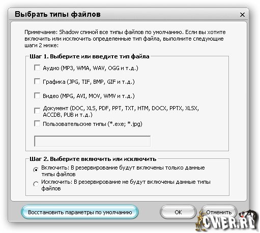 • Включение и исключение особых типов файлов из встроенных групп или создание особой группы для таких файлов
