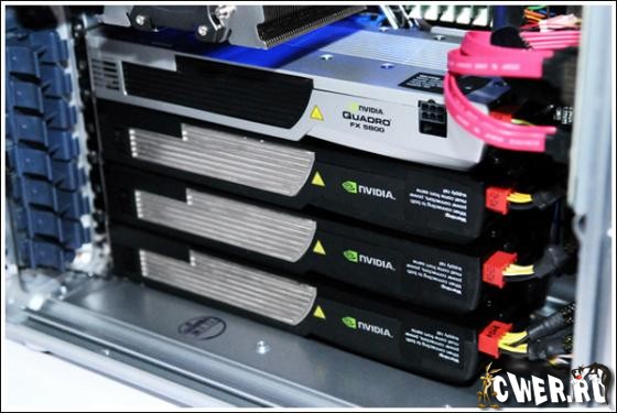 Видеоадаптер Quadro FX 5800 снабжен 240 ядрами CUDA Parallel Processor Cores и 4 Гб памяти с пропускной способностью 102 Гб/с; поддерживаются программные интерфейсы OpenGL 2.1 и Microsoft DirectX 10. Каждая из вспомогательных карт Tesla C1060 насчитывает 240 потоковых процессоров и 4 Гб памяти GDDR3 с 512-битной шиной. Таким образом, суммарное число потоковых ядер в системе равно 960.
