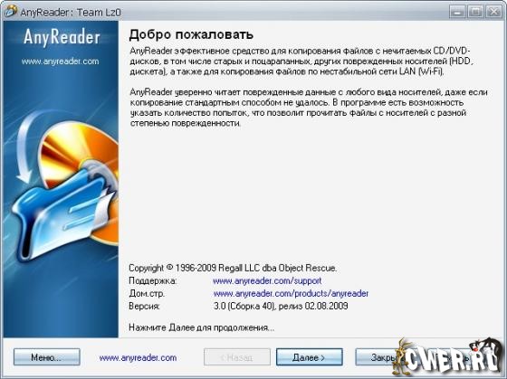 Часто необходимо считать данные с поврежденных "флешэк", дискет, поцарапанных DVD/CD-дисков, ненадежных сетей LAN (Wi-Fi). Обычными средствами это будет сделать, скорее всего, невозможно. Для таких случаев и существует программа AnyReader, которая выручит вас в подобной ситуации и легко прочитает, казалось бы, уже потерянную ценную информацию с любых носителей, которые доступны как буква диска в операционной системе Windows. Продолжение чтения (копирования) данных после возникающих ошибок или потери соединения в сети является уникальной возможностью программы AnyReader.