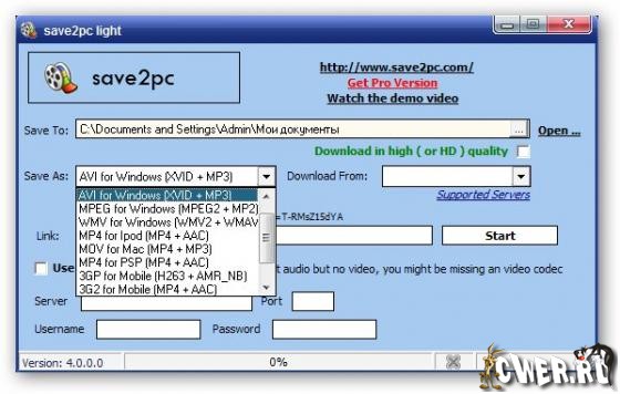 С помощью save2pc можно легко загрузить любой видео файл веб-сервиса YouTube по приведенной на его странице ссылке. Все, что требуется от пользователя - это скопировать и вставить ссылку в специальное окно программы, выбрать желаемый формат и запустить автоматическую загрузку и конвертирование видео файла.