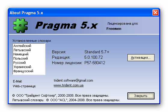 Pragma - это многоязычная программа машинного перевода для перевода текстовых документов с одного языка на другой. Программа поддерживает семь языков: английский, русский, украинский, немецкий, латышский, польский и французский. Pragma выполняет перевод непосредственно в окне активного приложения или в отдельном окне быстрого перевода. С помощью программы можно переводить текстовую информацию, представленную в виде документов MS Word, Интернет страниц, почтовых сообщений, справок, а также содержимое различных текстовых окон. За счет автоматизации многих функций Pragma 5 очень проста в использовании.