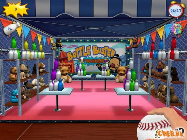 Симулятор увлекательного конкурса по метанию мячей в бутылки, за сбивание которых игрок награждается плюшевыми игрушками. Сбейте все бутылки на уровне и закончите его с минимальным числом бросков, чтобы набрать наивысший балл. Вы можете воспользоваться законами физики и сбить, например, целую полку вместо того чтобы целиться в каждую группу выставленных на ней бутылок. Будут и преграды - иногда придётся кидать рикошетами или избавляться от лишних стенок другими способами. Советую!
