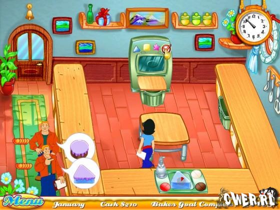 Героиня этой игры – юная Джил. Ей в наследство досталась пекарня по изготовлению тортов. Вы должны помочь выжить маленькой пекарне в большом и жестоком мире конкуренции. За определенное время вы должны заработать как можно больше денег, и тем самым увеличить доход пекарни.
