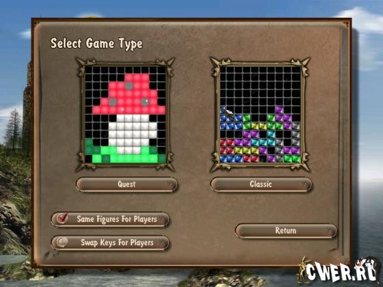 Разновидность тетриса. Отправляйтесь на поиски сокровищ, спрятанных в старинном замке. Действие игры разворачивается на фоне живописного интерьера, подвалов и сокровищ, которые их наполняют. Вам предстоит управлять падающими фигурами, которые постепенно заполняют поле; располагайте их таким образом, чтобы они составляли горизонтальные линии, которые исчезнут. В режиме задания вам нужно будет располагать фигуры не произвольным образом, а в соответствии с определенной схемой-рисунком.