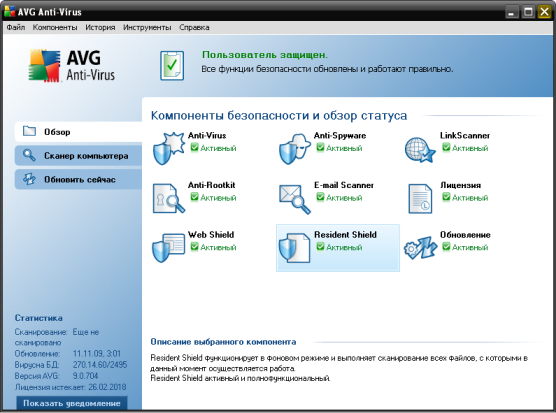 AVG Anti-Virus включает в себя следующие модули: