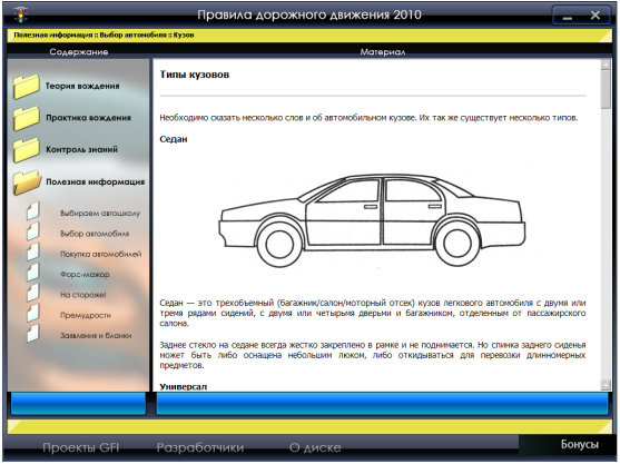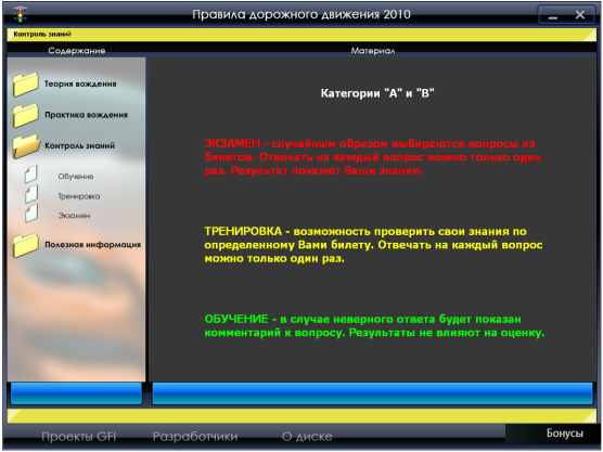 Самоучитель вождения по городу и Ппавила дорожного движения 2010 подготовят Вас к теоретическому и практическому экзаменам на получение водительского удостоверения категорий: А, B, С, D, а главное – поможет овладеть навыками управления автомобилем в условиях города, изучить реальные маршруты московских экзаменационных подразделений ГИБДД.