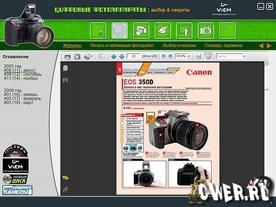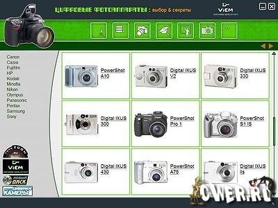Этот диск станет гидом в мире цифровой фототехники для тех, кто хочет сделать правильный выбор при покупке фотоаппарата, узнать об ассортименте и возможностях фотокамер, об особенностях работы с ними. Здесь содержится каталог цифровых фотоаппаратов от 12 ведущих производителей. База знаний предоставит информацию о приемах и особенностях работы с цифровыми камерами. Десять пошаговых уроков станут руководством по фотоискусству для новичков и справочным материалом для профессионалов, а номера журнала «Лучшие цифровые камеры» ознакомят с лучшими образцами фототехники.