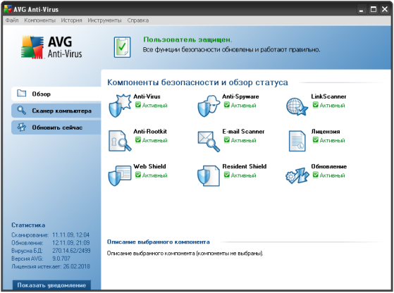 AVG Anti-Virus включает в себя следующие модули: