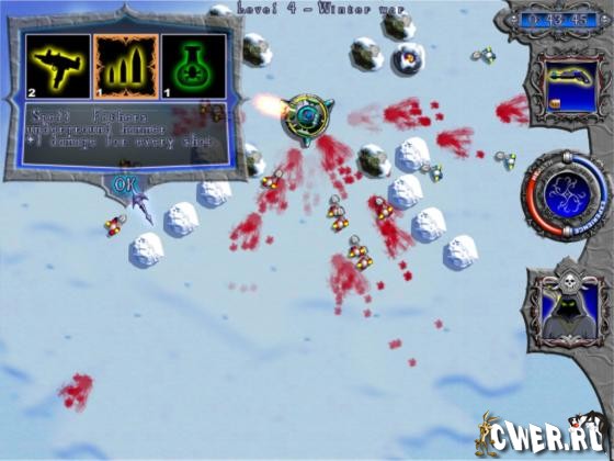 И конечно же не забывайте про разнообразные виды оружия и боевую магию, всевозможные типы противников и тактик, и про кампанию длинной в 40 уровней. Специально для самых маленьких - детский режим, позволяющий косить толпы врагов, а вместо крови с них выпадают цветы!