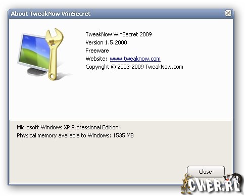 Скачать программу TweakNow WinSecret 2009 1.5.2 (5,01 МБ):