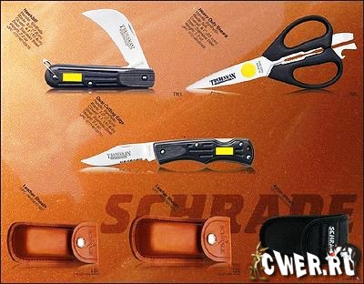 На 90 с лишним страницах представлен весь ассортимент ножей, а также несколько моделей других инструментов, приспособлений для заточки и аксессуары. Все ножи Schrade отличают весьма бюджетные цены. Компания, выпускающая ножи с 1904 года, переживает сейчас не лучшие времена. Поговаривают, что их имя хочет купить то ли Китай, то ли Тайвань.
