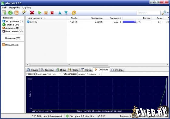 µTorrent - компактный BitTorrent-клиент с поддержкой одновременной загрузки сразу нескольких файлов, настраиваемой полосой пропускания, быстрым восстановлением прерванной загрузки и небольшим использованием памяти.