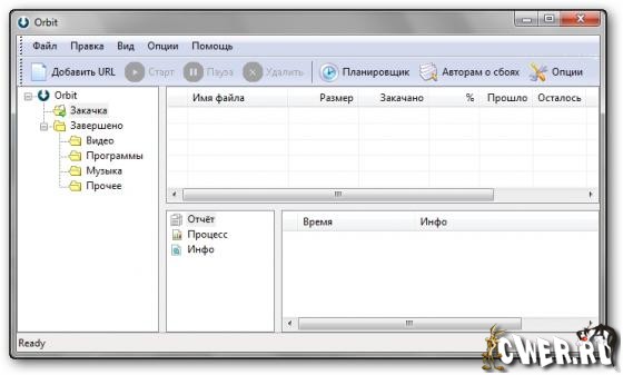 Orbit Downloader - менеджер закачек файлов из Интернета. Данная программа закачивает файлы в многопоточном режиме, поддерживает интеграцию с различными браузерами (Internet Explorer, Opera, FireFox и Maxthon), может закачивать файлы, расположенные в файлообменных сервисах, в частности, с RapidShare.com. Программа не требовательна к ресурсам компьютера. Orbit Downloader позволяет скачивать файлы по многим протоколам (HTTP, HTTPS, FTP, RTSP и MMS), может просматривать содержимое ZIP-файла до его скачивания и автоматически загружать файлы по расписанию, а также имеет расширенные настройки для работы через прокси-сервер.