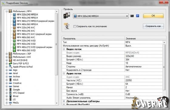 - MP4 файлы для форматов iPod/iPhone/PSP/BlackBerry
