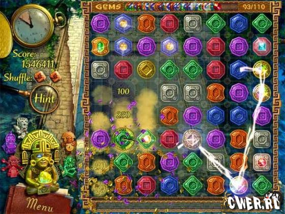 В этой игре вам предстоит решить множество логических задачек и отыскать дорогу к древней столице ацтеков. Чтобы справиться с этой миссией — передвигайте по игровому полю солнечные фишки таким образом, чтобы после каждого хода получалась горизонтальная или вертикальная линия минимум из трех одинаковых элементов. К некоторым фишкам прикреплены кристаллы — освободите их, и они укажут путь к священному городу индейцев.